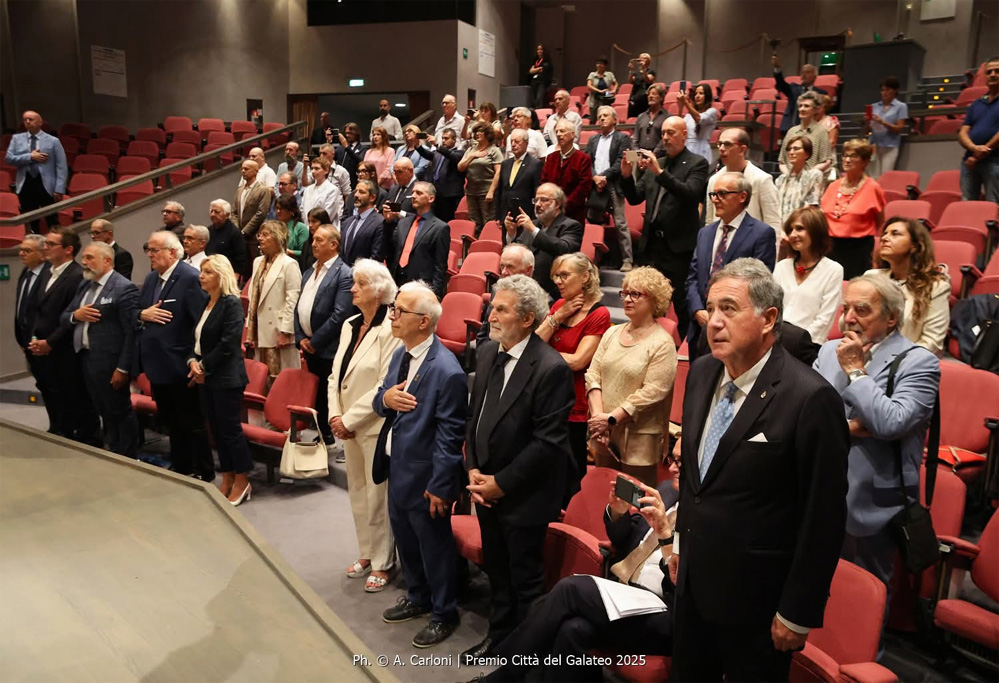 Aprendo la cerimonia di premiazione la Presidente del Comitato d’onore, Maria Pia Turiello, ha illustrato la natura del Premio, sottolineando tra l’altro: “[…] Questo Premio nasce per custodire e trasmettere i valori universali del Galateo, l’opera immortale di Antonio De Ferrariis, umanista salentino che ha saputo tradurre nel linguaggio del suo tempo l’essenza della convivenza civile, del rispetto reciproco, della cultura come ponte tra le differenze. Il Galateo non è soltanto un trattato di buone maniere, ma un manifesto di civiltà, di armonia sociale e di bellezza etica, oggi più che mai attuali in un mondo che cerca nuovi equilibri. Celebrarlo a Gorizia significa esaltare la vocazione di una città di confine, crocevia di popoli, culture e lingue, capace di trasformare la sua storia in esempio di dialogo e di unità europea. È qui che il Premio trova un terreno fertile per ricordare come l’incontro tra identità diverse non sia minaccia, ma risorsa preziosa. Il riconoscimento che oggi conferiamo non è solo un tributo alla memoria del Galateo, ma un impegno collettivo a coltivare gentilezza, sapere, bellezza e responsabilità come strumenti di crescita personale e sociale. Valori che ci guidano nel consegnare questo Premio a personalità che, con il loro impegno e il loro esempio, incarnano e diffondono gli stessi principi che animarono Antonio De Ferrariis. Con gratitudine e fiducia, auguro a tutti che questa celebrazione possa essere occasione di riflessione e di rinnovata consapevolezza: il Galateo non appartiene al passato, ma al futuro delle nostre comunità.”
