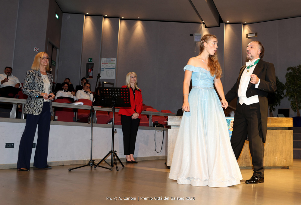 Il Premio internazionale d’Eccellenza “Città del Galateo – Antonio de Ferrariis” ha così celebrato la sua XII edizione con una cerimonia di premiazione che ha riservato momenti di forte emozione attraverso gli interventi delle Personalità premiate, che non hanno mancato di attualizzare le loro riflessioni al tragico tempo che l’umanità sta vivendo, attraverso forti richiami al dialogo, alla pace, all’esigenza di un umanesimo nuovo. Personalità, tutti gli insigniti, che nella loro vita e nei campi del loro impegno hanno dato testimonianze davvero esemplari di eccellenza nelle diverse discipline dell’ingegno umano. Nel corso dell’evento l’esecuzione di alcuni intermezzi musicali: il basso Alessandro Svab, ha cantato l’aria da camera “Kam” testo del sommo poeta France Prešeren musica di F. Gerbič; al secondo brano “O mio babbino caro…” dal Gianni Schicchi di G. Puccini è stato splendidamente eseguito dal soprano sloveno Karin Luin, poi seguito dal duettino dal Don Giovanni di Mozart, “Là ci daremo la mano… “, con accompagnamento del pianista M° Fabio Zanin. A chiusura dell’evento, dalla Vedova allegra di Lehar, “Donne, donne eterni Dei…” con il M° Alessandro Svab, il pianista M° Fabio Zanin, il Coro dell’Accademia lirica Santa Croce e con il Coro Go&Sing, diretto dal M° Michela De Castro. Un finale davvero entusiasmante, che ha trascinato la partecipazione del pubblico.