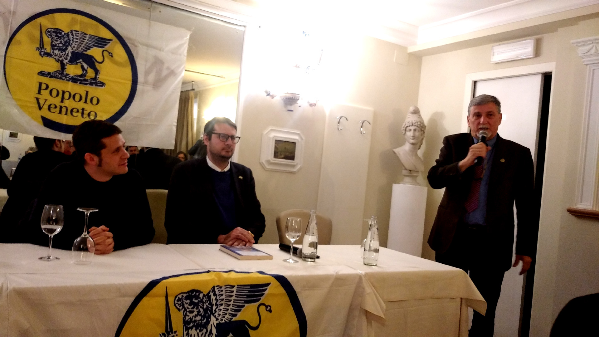 L’incontro è stato introdotto dall’on. Vito Comencini di Popolo Veneto, con successivi contributi di Palmarino Zoccatelli (presidente dell’Associazione culturale Veneto-Russia) e del consigliere regionale Davide Lovat (del Gruppo consiliare Szumski Resistere Veneto). Presente in sala anche il tradizionalista cattolico e legittimista storico Maurizio Ruggiero.