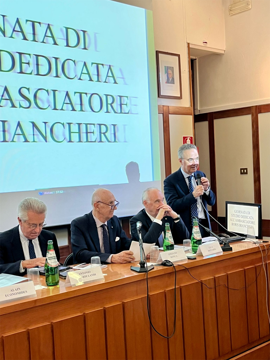 A tracciarne il ritratto è stato un mosaico di testimonianze autorevoli. Durante la giornata di studio, dopo un inquadramento storico del Prof. Luca Riccardi, alcuni ambasciatori hanno ricostruito il Biancheri diplomatico: dallo stile di leadership discreto ma efficace (Amb. Stefano Ronca), all’eleganza intellettuale (Amb. Antonio Zanardi Landi) e alla professionalità nei momenti di crisi (Amb. Sergio Mercuri). Il quadro è stato poi completato esplorando le sue altre anime: quella di uomo dei media, con l’impegno all’ANSA nella gestione dell’informazione in tempi di crisi ricordato da Stefano Polli, e quella di guida di istituti culturali, con il rilancio dell’ISPI evidenziato da Paolo Magri in un videomessaggio. A Fernando Gentilini, infine, il compito di analizzare il suo raffinato stile di scrittore. Un ricordo personale e profondo è stato poi condiviso dalla moglie, la Professoressa Flavia Arzeni Biancheri, che ha unito la sfera pubblica e quella privata, restituendo l’immagine di un uomo dalla visione coerente.