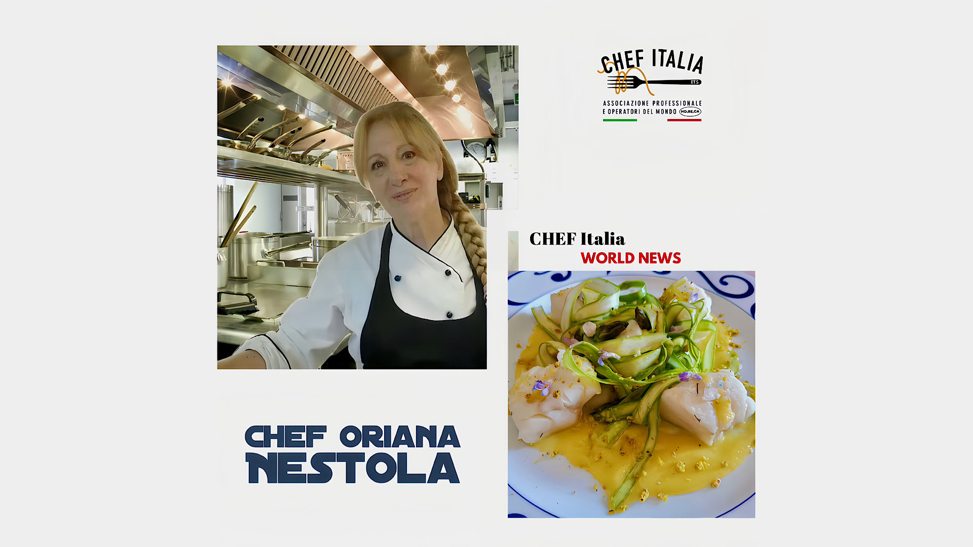 Oggi presentiamo la Chef Maria Oriana Nestola, più semplicemente Oriana, recentemente entrata a far parte di CHEF Italia. Classe 1961, nasce  in una terra notoriamente bellissima, baciata dal sole, dal mare e dal vento: il Salento. Ci dice, con delle parole comuni a molti, di aver affiancato sua nonna in cucina sin da adolescente, contando, da subito, oltre che sul suo proprio interesse decisamente innato, soprattutto sull’importante ruolo della stessa nella trasmissione della passione per l’Arte Culinaria:  sapori autentici e semplici che le sono rimasti dentro e sono, per lei, una costante fonte di ispirazione. Poi, la materia prima è al centro della sua cucina, l’obiettivo è valorizzarla preservandone l’identità. Il Salento, il tacco dello Stivale, non è solo una terra meravigliosa con paesaggi incantevoli, acque cristalline e un tesoro di tesori artistici e architettonici, ma è anche la culla di una gastronomia deliziosa. Conoscere un popolo attraverso la storia, l’arte, la cultura, le tradizioni, ma anche comprenderne l’identità attraverso i sapori ed i colori offerti dalla buona cucina, assaporando prodotti dai profumi di un tempo che si mantengono intatti. La cucina salentina è umile e povera e si basa principalmente su verdure, cereali e legumi, tutti ricchi di nutrienti. È anche una cucina molto genuina perché si utilizzano solo i prodotti di stagione più freschi; una cucina estremamente povera ma anche estremamente ricca di fantasia e sapori sorprendenti, tenendo presente che l’ingrediente principale di ogni cucina salentina è l’amore con cui le nonne e mamme hanno insegnato le generazioni future a cucinare: ogni piatto è come un figlio ed è custodito e amato dal momento in cui viene concepito fino al momento dell’assaggio, un viaggio nella gastronomia salentina partendo proprio dal pane, alimento base di ogni pasto, che è sacro e necessita di un tempo esclusivamente dedicato. I salentini si impegnano a dedicargli  il momento giusto per gustarlo con calma, e cercano di trasmettere questa cultura ai turisti che visitano il territorio. A questo proposito, non possiamo non menzionare la frisa, non uno street food ma un piatto tipico della cucina povera che sostituisce il pasto principale: si tratta di un pane duro e rotondo, immerso nell’acqua e condito, il più delle volte, solo con pomodoro fresco. A volte può essere condito con verdure arrosto, tonno, capperi e mozzarella. La nostra Chef Oriana, però, oggi vive e lavora a Milano da circa 18 anni, dove ha avuto l’opportunità di intensificare ed accrescere la sua formazione attraverso la frequenza di diversi corsi nell’Accademia Gualtiero Marchesi e, principalmente, nell’Accademia Italiana Chef dove ha avuto modo di diplomarsi in alta specializzazione dei primi piatti italiani. In seguito ha potuto cimentarsi in diverse esperienze lavorative ed, attualmente, con convinzione, ci dice che, in questo momento della sua vita, è dove deve essere, prestando la sua opera in Milano Ristorazione, dove si preparano menù per scuole d’infanzia, primarie e secondarie, proponendo una alimentazione sostenibile, inclusiva e con particolare attenzione all’educazione alimentare per le nuove generazioni: ogni giorno si lavora per offrire pasti altamente salutari, sviluppando ricette che uniscono creatività e nutrizione, con l’obiettivo di avvicinare i bambini a nuovi alimenti, promuovendo un approccio consapevole e divertente all’alimentazione sana, sensibilizzando anche le famiglie sull’importanza di contrastare gli sprechi alimentari.  *Ed eccoci ora ad una delle tante ricette della nostra Chef Oriana Nestola, il baccalà in olio cottura con crema di peperone e guarnizione di asparagi, secondo una tecnica che permette di cuocere i cibi nell’olio a bassa temperatura, preservandone così tutti i sapori e le fragranze, oltre che le proprietà nutritive. Ma veniamo ora agli ingredienti: 1 patata media, 1/2 peperone giallo, 1/2 scalogno, 6 asparagi, 1 spolverata di friscous e qualche fiore edulo, 1 filetto di baccalà dissalato da dividere in bocconcini, olio di semi (80%), olio extravergine d’oliva (20%), 1 rametto di rosmarino, 1 foglia di alloro, 10 rametti di timo, 3 grani di pepe nero, 5 bacche di ginepro, 1 buccia di limone. Il Friscous nasce nel Salento, in Puglia, un territorio vocato alla produzione di grano e con un’importante tradizione nell’arte della panificazione: dal nome possiamo intuire l’ambizione dei suoi produttori, che hanno voluto creare dalla tradizionale frisa, la fresella, un couscous tutto pugliese. Un alimento innovativo con una scelta particolare degli ingredienti che lo compongono: la semola di grano duro a basso indice di glutine, il ricco bouquet di fragranze del lievito madre, le proprietà antiossidanti della curcuma, la scrupolosa lavorazione artigianale e la cottura in antichi forni a legna di ulivo, oltre ad esaltarne il sapore e il gusto, lo rendono un prezioso alleato per la nostra salute: basso apporto calorico, alta digeribilità, assenza di colesterolo, proprietà depurative e antinfiammatorie sono le eccezionali caratteristiche di questo alimento. Ed eccoci ora al procedimento: tagliate a dadini lo scalogno, quindi pelate la patata, affettatela e mettete a sudare il tutto con un filo d’olio in una padella antiaderente. Dopo 5 minuti aggiungete il peperone tagliato a listarelle, regolate di sale e portare a cottura con un filo d’acqua; a cottura ultimata frullare il tutto con un mixer e setacciate con un colino. Tenete al caldo. Lavate e affettate con un pelapatate gli asparagi, quindi immergeteli in acqua e ghiaccio fino a quando si arricceranno, dopodiché asciugateli con carta assorbente e metteteli in una ciotola condendoli con un pò di sale ed un filo d’olio extravergine d’oliva: vi serviranno per la guarnizione. Per l’olio cottura, mettete la miscela di olio extravergine d’oliva e di semi in un pentolino, aggiungete le spez